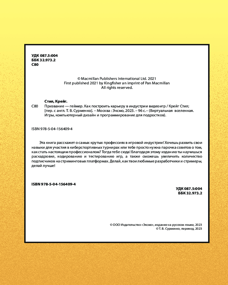 💳 Оплатить за товар можно при получении 🇰🇿 Есть бесплатная доставка по Казахстану от 1 дня 🎁 Копите бонусы с каждой покупки Серия: Виртуальная вселенная. Игры, компьютерный дизайн и программирование для подростков Узнай, как превратить свои игровые таланты в успешную карьеру! |