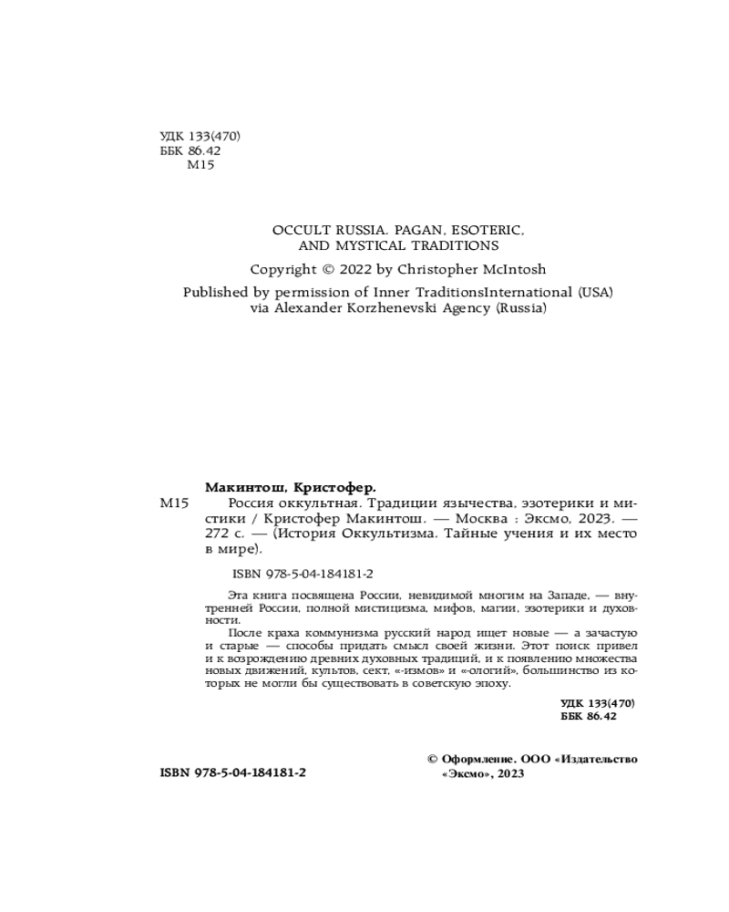 Серия: История оккультизма. Тайные учения и их место в мире Эта книга посвящена России, невидимой многим на Западе — внутренней России, полной мистицизма, мифов, магии, эзотерики и духовности. |