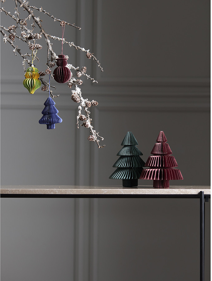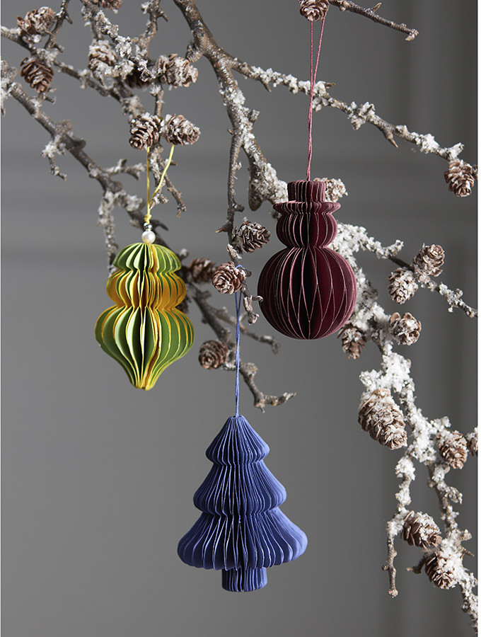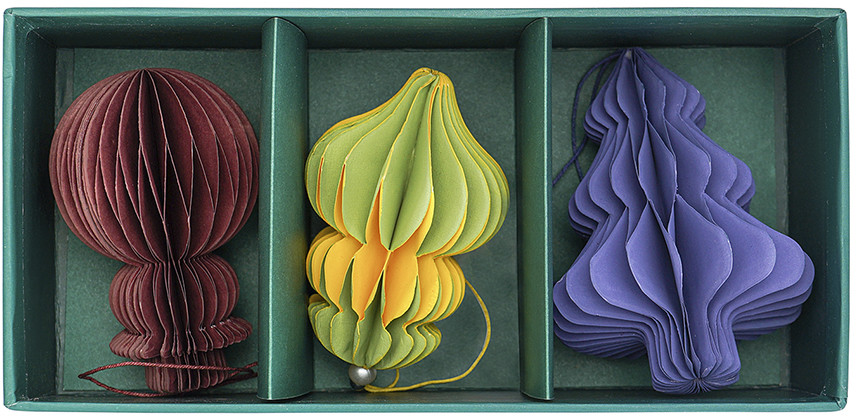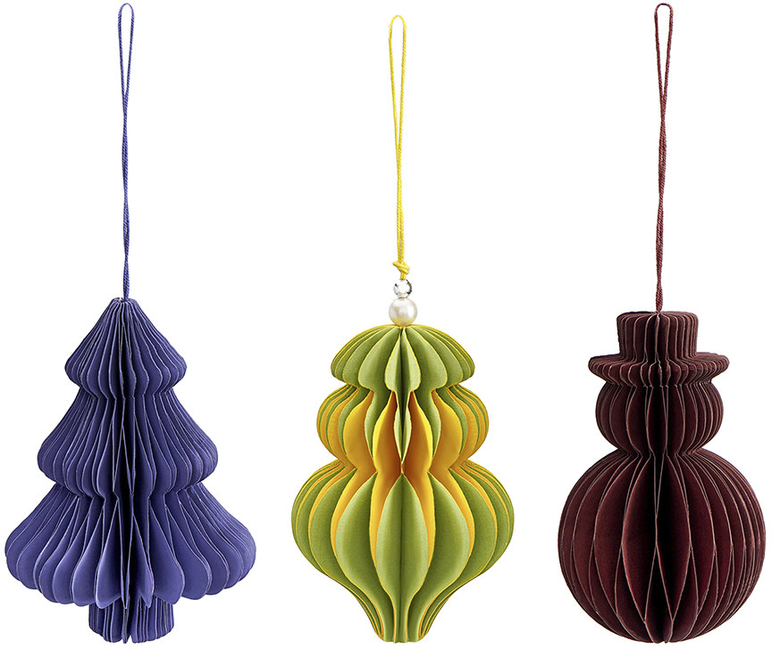 Набор украшений из бумаги Honeycomb festive из коллекции New Year Essential – простой способ добавить в новогодний наряд вашей ёлки стильный акцент и привнести в праздничный интерьер нотку ностальгии и уюта.