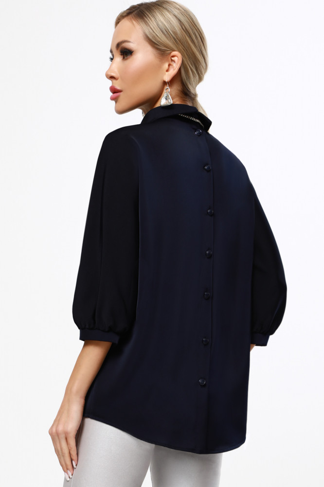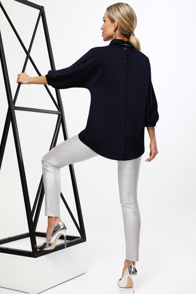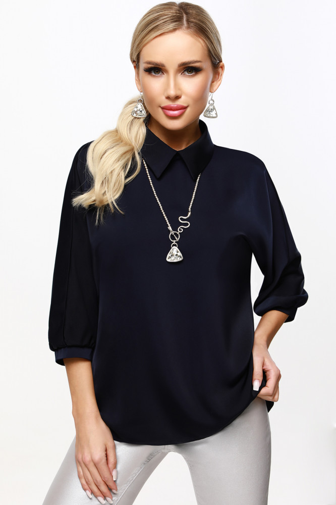 Нарядная блузка. Не прогадала с цветом. Заказала синий. Соответствует размеру .