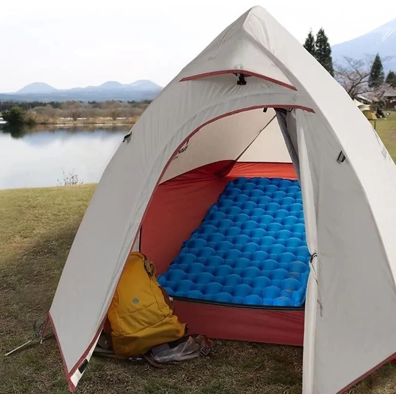 Нейлоновая ткань отлично справляется с физическим износом. Внутренний слой изготовлен из термопластичного полиуретанового каучука. Этот материал не так громко скрипит, когда человек переворачивается во сне. Многослойная ткань повышает прочность коврика и повышает уровень тепла внутри изделия. Изголовье оснащено подушкой для поддержки шеи, плеч и головы. Матрас имеет более 70 воздушных ячеек, которые распределяют нагрузку по всей поверхности изделия и обеспечивают равномерной поддержки всего туловища. Кроме спокойного сна вы также получаете дополнительную защиту от холодной земли.