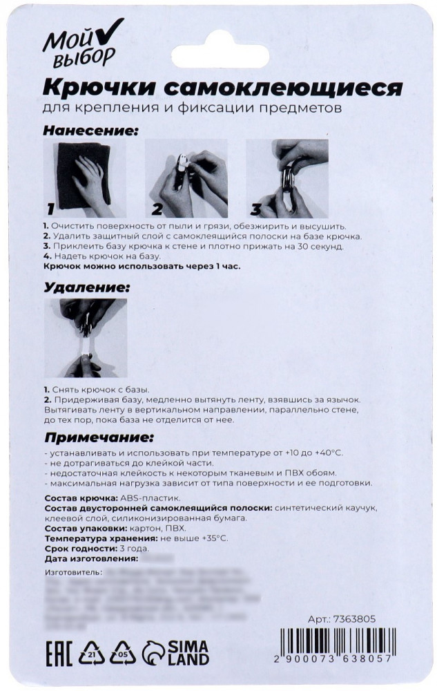 Мой выбор Крючки самоклеящиеся-25% +15