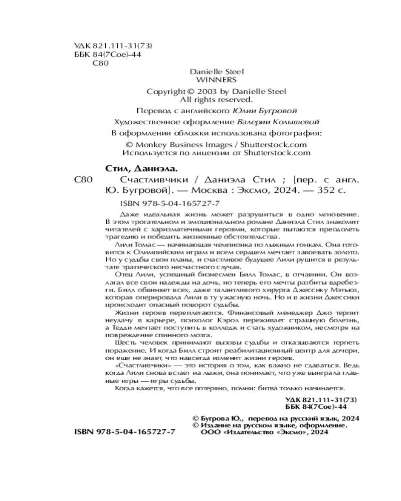 Даже идеальная жизнь может разрушиться в одно мгновение. В этом трогательном и эмоциональном романе Даниэла Стил знакомит читателей с харизматичными героями, которые пытаются преодолеть трагедию и победить жизненные обстоятельства.