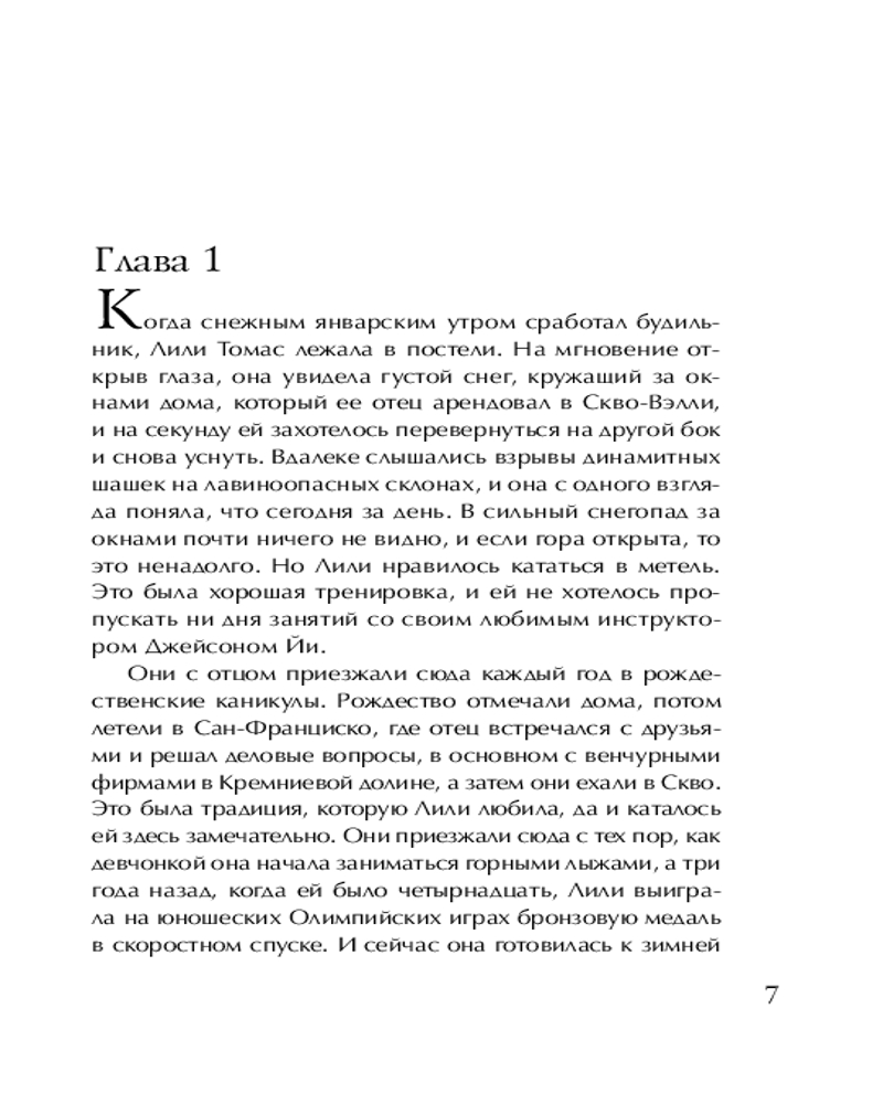 Лили Томас — начинающая чемпионка по лыжным гонкам. Она готовится к Олимпийским играм и всем сердцем мечтает завоевать золото. Но у судьбы свои планы, и счастливое будущее Лили рушится в результате трагического несчастного случая.