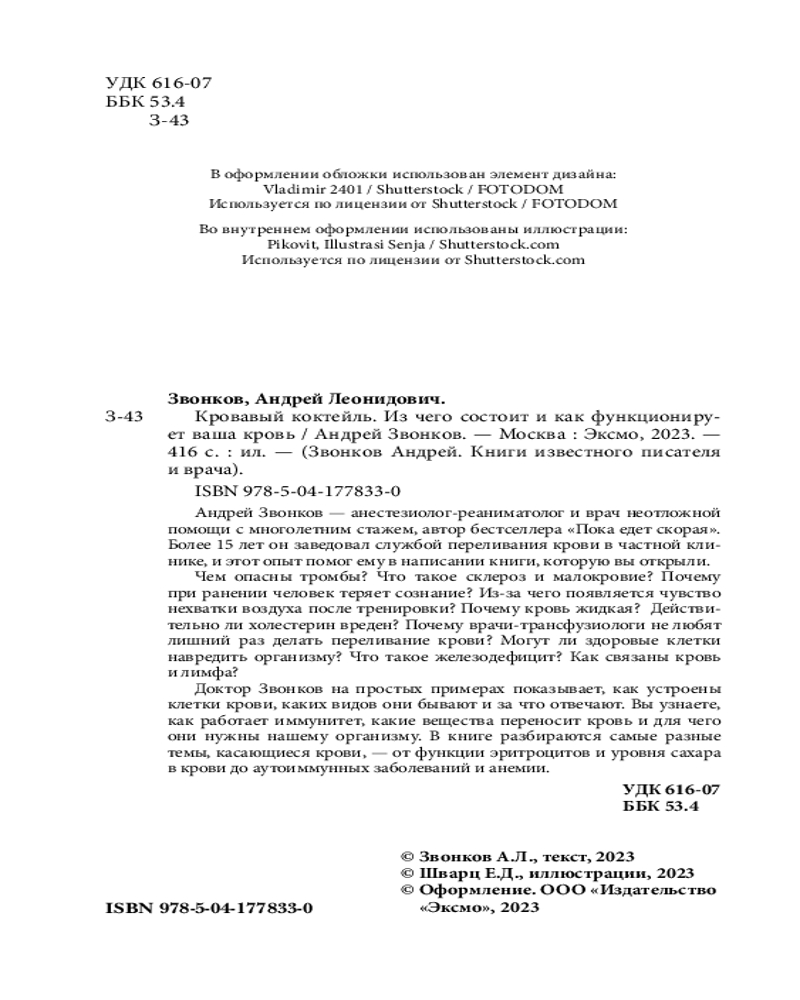💳 Оплатить за товар можно при получении 🇰🇿 Есть бесплатная доставка по Казахстану 🎁 Копите бонусы с каждой покупки Серия: Звонков Андрей. Книги известного писателя и врача Кровь не просто так ассоциируется с жизнью. Она питает органы и ткани, переносит важные вещества, работа ее клеток напоминает сообщество людей. Из чего состоит кровь и как устроена кровеносная система? Чем опасны тромбы? Что такое склероз и анемия? Почему при большой кровопотере человек теряет сознание? Могут ли здоровые клетки навредить организму? Какая связь между кровью и лимфой? |