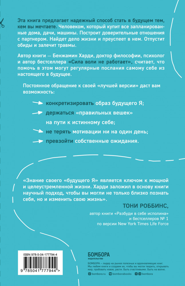 💳 Оплатить за товар можно при получении 🇰🇿 Есть бесплатная доставка по Казахстану от 1 дня 🎁 Копите бонусы с каждой покупки Серия: Хиты саморазвития Эта книга предлагает надежный способ стать в будущем тем, кем вы мечтаете. Человеком, который купит все запланированные дома, дачи, машины. Построит доверительные отношения с партнером. Найдет дело жизни и преуспеет в нем. Отпустит обиды и залечит травмы. |