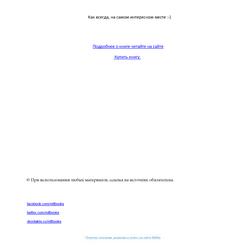 Прочитала за пару часов. Не скажу что Ваууу , но потратить время на книгу можно ,интересная форма подачи информации.Возможно это новый подход в современной литературе.