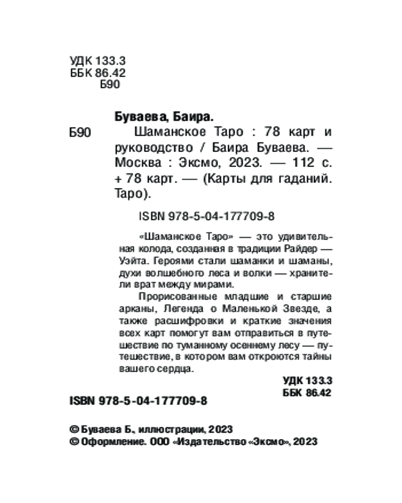 💳 Оплатить за товар можно при получении 🇰🇿 Есть бесплатная доставка по Казахстану от 1 дня 🎁 Копите бонусы с каждой покупки Серия: Карты для гаданий. Таро Колода карт «Шаманское Таро» сочетает традиции и символизм классической колоды Райдера-Уэйта, калмыцкий шаманский фольклор и авторский стиль художницы Баиры Буваевой. Героями этой колоды стали шаманы и шаманки, духи волшебного леса и волки — хранители врат между реальным и потусторонним миром. |