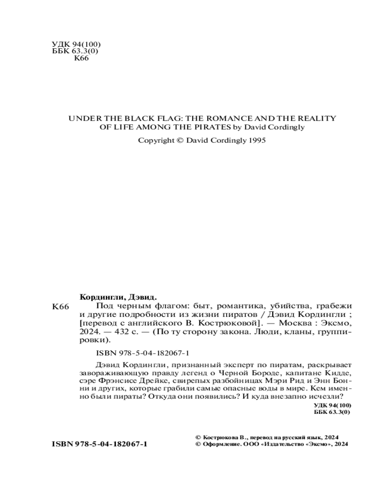 Под чёрным флагом. Быт, романтика, убийства, грабежи и другие подробности из жизни пиратовВ данный момент этот товар отсутствует в продаже. Возможно, у нас найдется аналогичный или похожий товар здесь. Серия: По ту сторону закона. Люди, кланы, группировки Здесь в захватывающих подробностях рассказывается о взлетах и падениях пиратов в Карибском бассейне и Америке, об оружии, которое они использовали, о кораблях, на которых они плавали, и о том, как они сражались и потерпели поражение. |