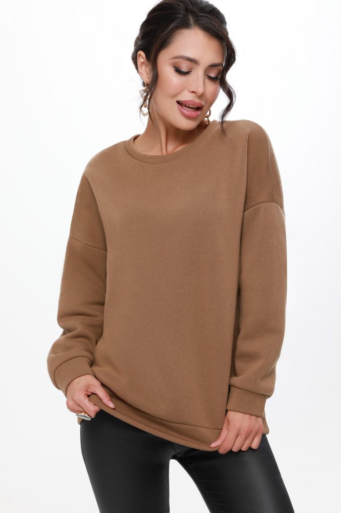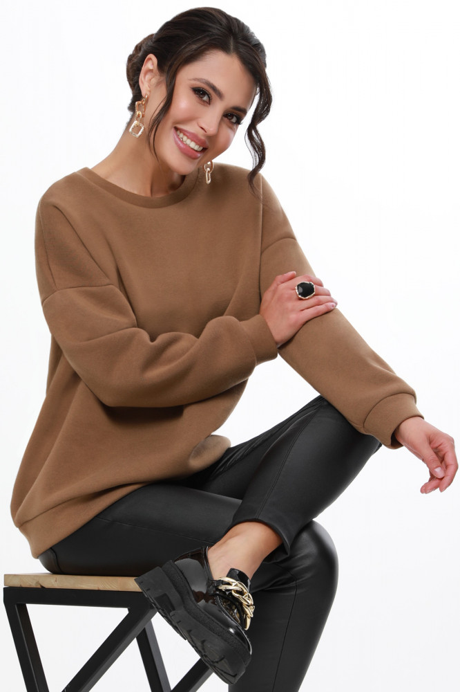 Теплый свитшот, небольшой начес, как раз сейчас актуально и дома и на улице носить, цвет приятный, размер подошел, правда катышки появились еще до стирки, после нескольких дней носки... убрала машинкой, для дома пойдет.