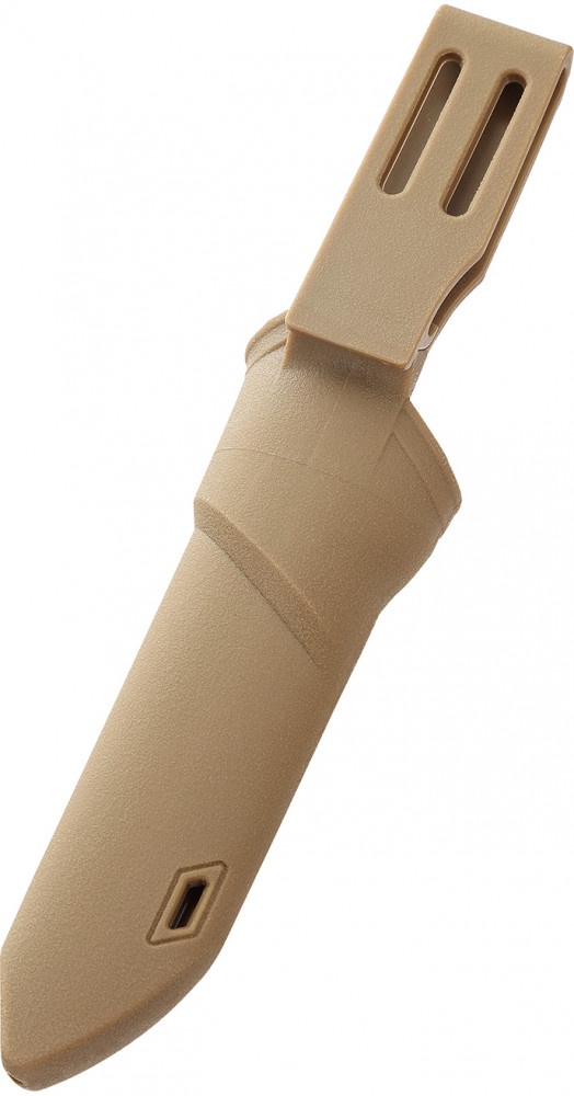 Отличный инструмент для походов и выживания. Идеален как первый нож для новичка: простой, удобный и надёжный. В ножны заходит с щелчком, сами ножны снабжены креплением для ношения на ремне.