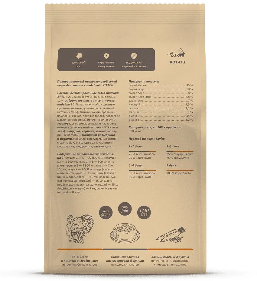 Savita Корм для котят с индейкой и бурым рисом