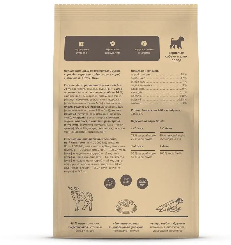 Savita Корм для собак малых пород с ягненком и бурым рисом