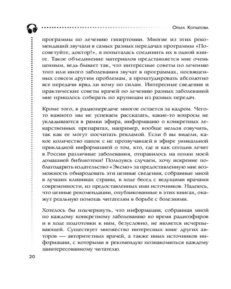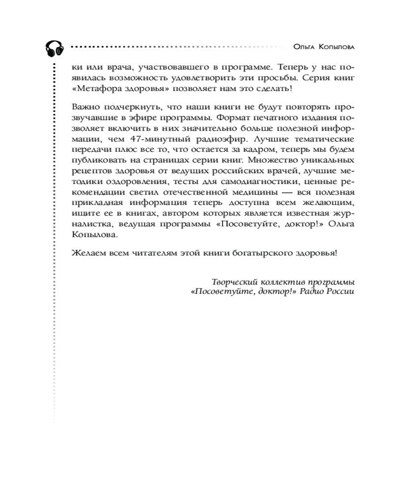 💳 Оплатить за товар можно при получении 🇰🇿 Есть бесплатная доставка по Казахстану от 1 дня 🎁 Копите бонусы с каждой покупки Серия: Метафора здоровья. Книги Ольги Копыловой В книге собраны уникальные рекомендации от ведущих врачей России, позволяющие существенно улучшить состояние сердечно-сосудистой системы. Вот что сказал о ней доктор медицинских наук, профессор, заслуженный врач Российской Федерации Анатолий Болеславович Ситель: «Можно ли вылечить гипертонию лекарствами? Увы, нет. С помощью лекарств можно снизить артериальное давление, но если перестать пить таблетки, оно снова повысится. А вот здоровый образ жизни способен творить чудеса! |