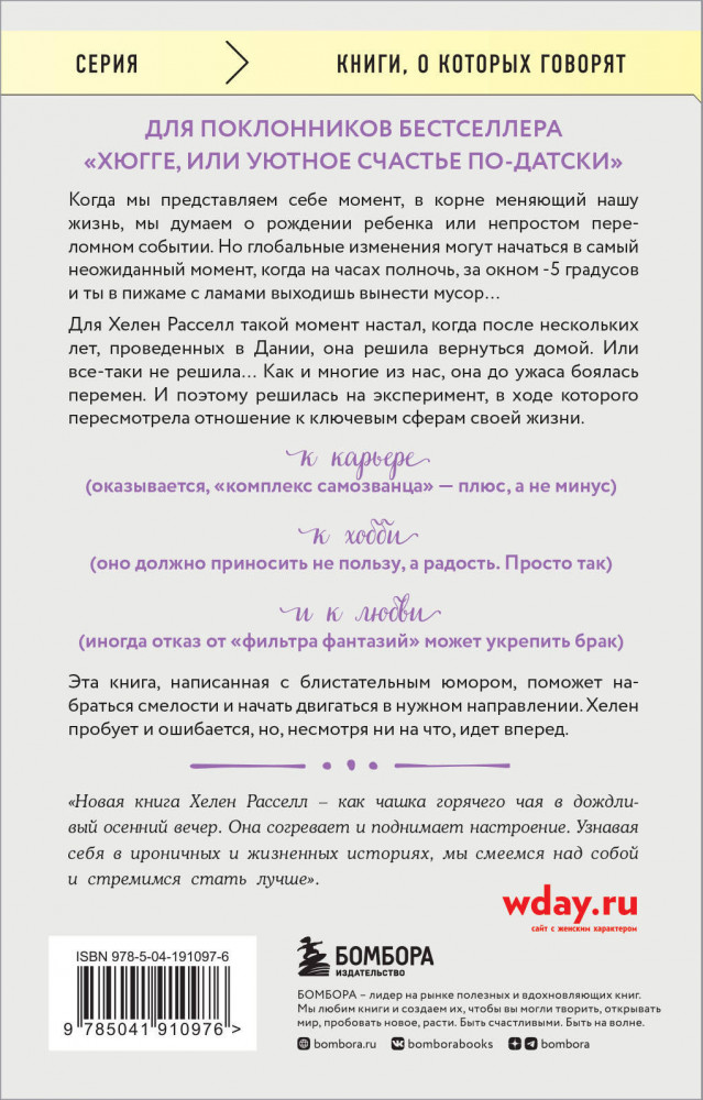 Хороший год, или Как я научилась принимать неудачи, отказалась от романтических комедий и перестала откладывать жизнь «на потом»В данный момент этот товар отсутствует в продаже. Возможно, у нас найдется аналогичный или похожий товар здесь. Серия: Книги, о которых говорят Книга в новом компактном оформлении. Когда мы представляем себе момент, в корне меняющий нашу жизнь, мы думаем о рождении ребенка, закате на экзотическом пляже или о взгляде в лицо опасности. Но на самом деле самые глобальные жизненные изменения могут начаться в самый неожиданный момент, когда на часах полночь, за окном −5 градусов и ты в пижаме с ламами выходишь вынести мусор... |