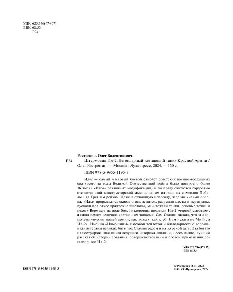 💳 Оплатить за товар можно при получении 🇰🇿 Есть бесплатная доставка по Казахстану от 1 дня 🎁 Копите бонусы с каждой покупки Серия: Легендарная техника. Иллюстрированные энциклопедии Ил-2 — самый массовый боевой самолет советских военно-воздушных сил (всего за годы Великой Отечественной войны было построено более 36 тысяч «Илов» различных модификаций) и по праву считается гордостью отечественной конструкторской мысли, одним из главных символов Победы над Третьим рейхом. Даже в отчаянную непогоду, задевая килями облака, «Илы» прорывались сквозь огонь зениток, разрушая мосты и переправы, пускали под откос вражеские эшелоны, уничтожали танки, огневые точки и пехоту Вермахта на поле боя. Гитлеровцы прозвали Ил-2 «черной смертью», а наша пехота величала «летающим танком». Сам Сталин заявил, что эти самолеты «нужны нашей армии, как воздух, как хлеб. Нам нужны не МиГи, а Ил-2». Именно «Ильюшины» с особой теплотой и благодарностью вспоминали ветераны великих битв под Сталинградом и на Курской дуге. |