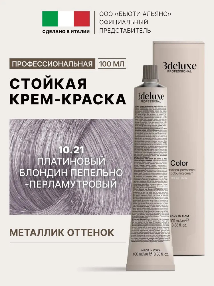 3Deluxe professional Крем-краска для волос, оттенок 10.21 Платиновый блондин перламутрово-пепельный