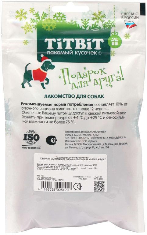 TiTBiT Колбаски для собак «Салямки»В данный момент этот товар отсутствует в продаже. Возможно, у нас найдется аналогичный или похожий товар здесь. Серия: Новогодняя коллекция Условия хранения товара: температурный режим от -10 до +25°С. |