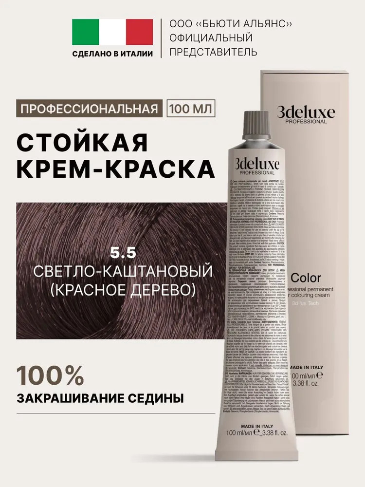 3Deluxe professional Крем-краска для волос, оттенок 5.5 Светло-каштановый (красное дерево)