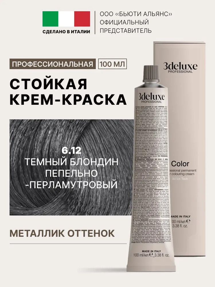 3Deluxe professional Крем-краска для волос, оттенок 6.12 Тёмный блондин пепельно-перламутровый
