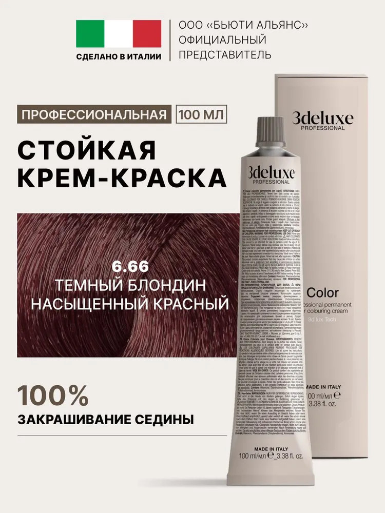 3Deluxe professional Крем-краска для волос, оттенок 6.66 Темный насыщенный красный