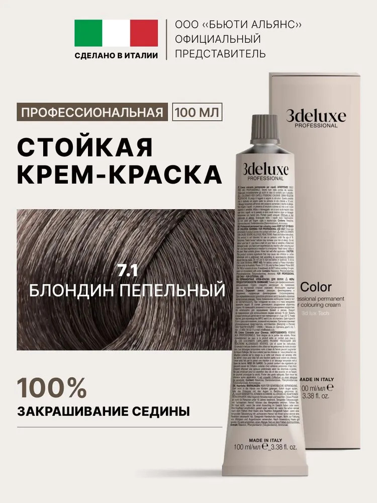 3Deluxe professional Крем-краска для волос, оттенок 7.1 Пепельный