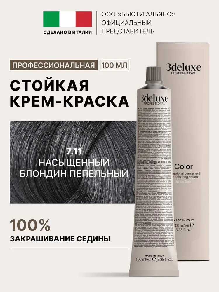 3Deluxe professional Крем-краска для волос, оттенок 7.11 Пепельный
