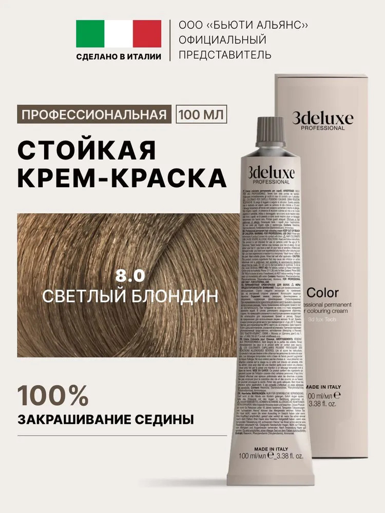 3Deluxe professional Крем-краска для волос, оттенок 8.0 Светлый блондин