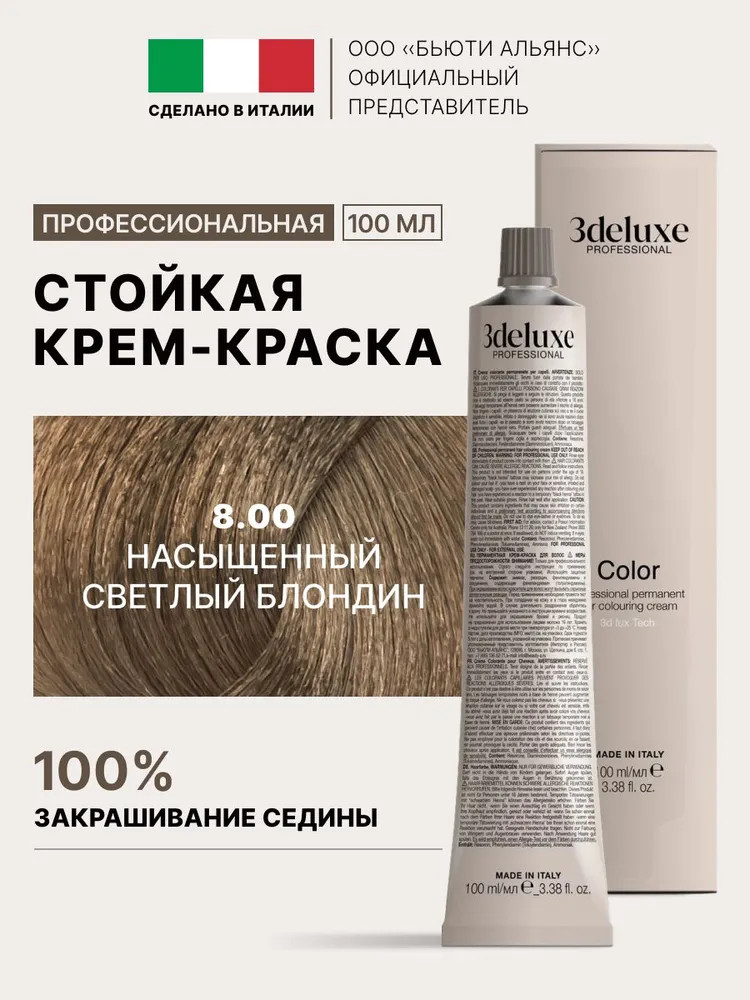 3Deluxe professional Крем-краска для волос, оттенок 8.00 Насыщенный светлый блондин