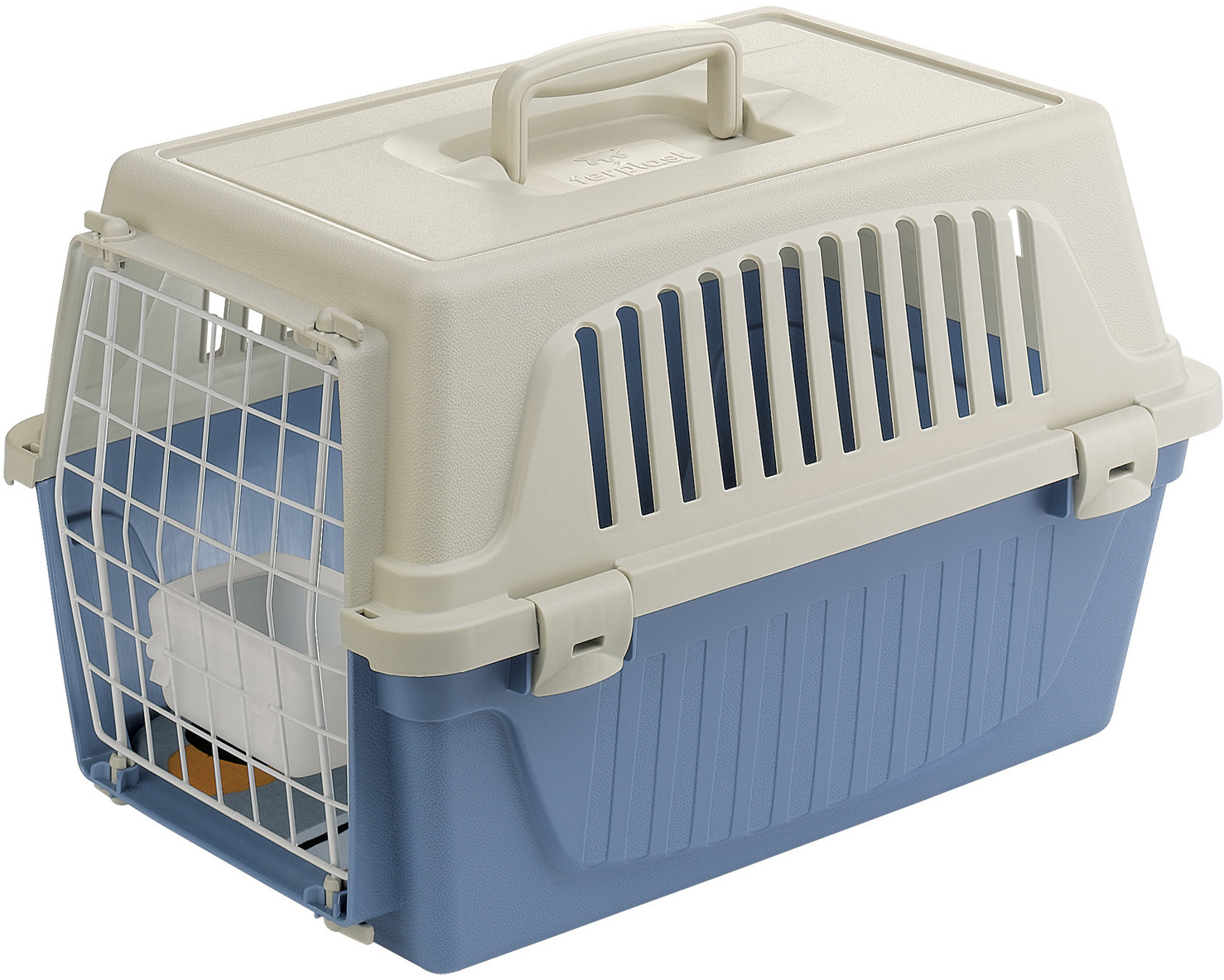 Переноски «Atlas» состоят из двух частей, надежно соединенных боковыми клипсами. Наверху расположена прочная ручка для перемещения переноски. Переноска оборудована боковыми вентиляционными решетками и металлической дверкой.