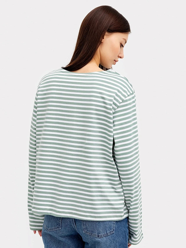 Стильный и комфортный полосатый лонгслив для женщин. Модель свободного силуэта выполнена из нежной трикотажной кулирки. Вырез круглый, рукава длинные. Спущенная линия плеча и углубленные проймы дарят свободу движений. Рекомендуем!