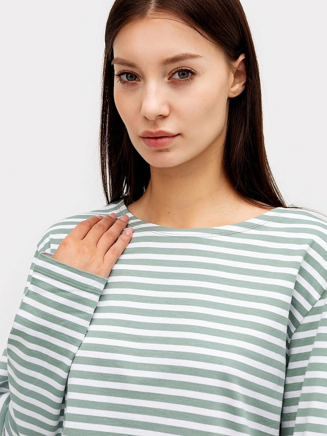Лонгслив пришёл серо-бирюзового цвета ,как-будто застиранный и поношенный. Цвет не соответствует фото , в люди не наденешь , только если дома носить
