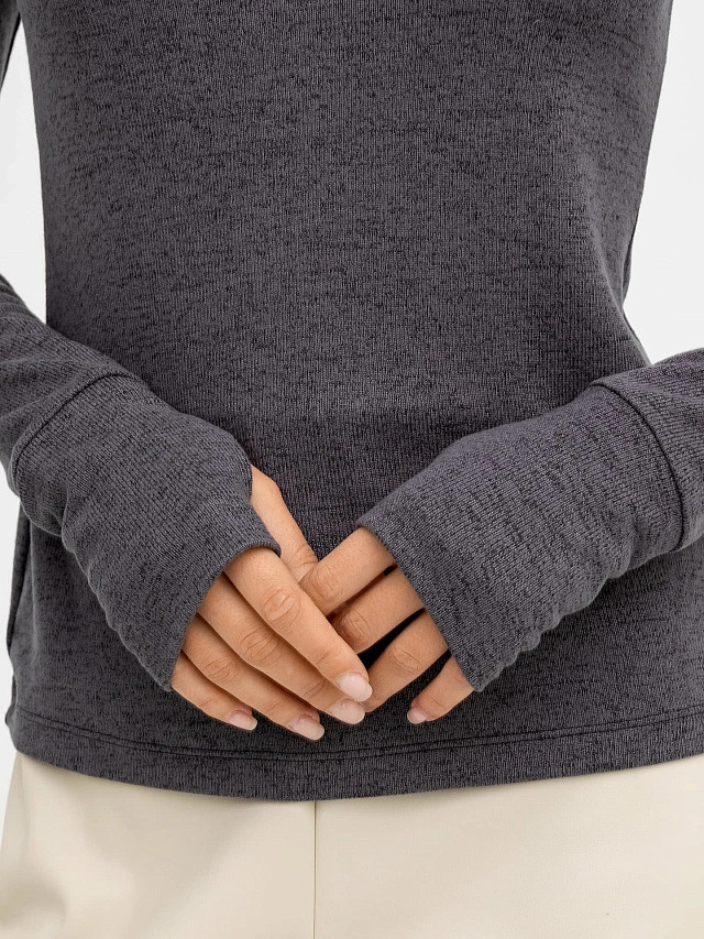 Приятная ткань мягкая и теплая. Правда горловина узковата- но это может моя головушка большая. Рукава удлиненные с прорезью для большого пальца - удобно когда холодно и стильно. Цвет приятный . Серый много хуже смотрится