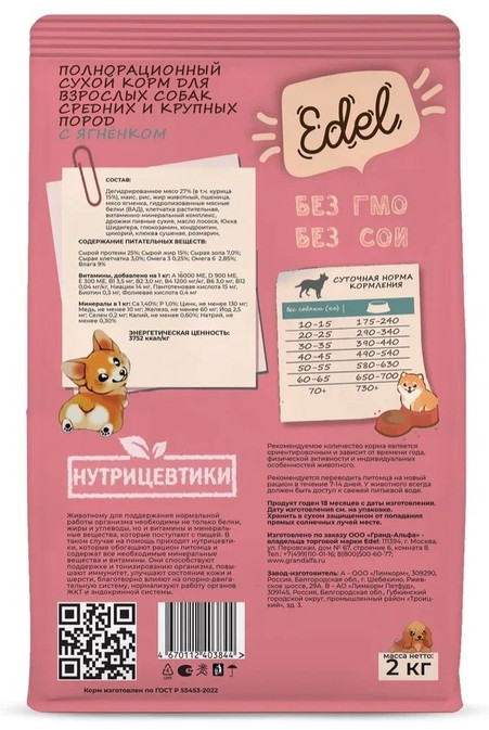 Edel Сухой корм для взрослых собак с ягненком «Medium & Maxi»