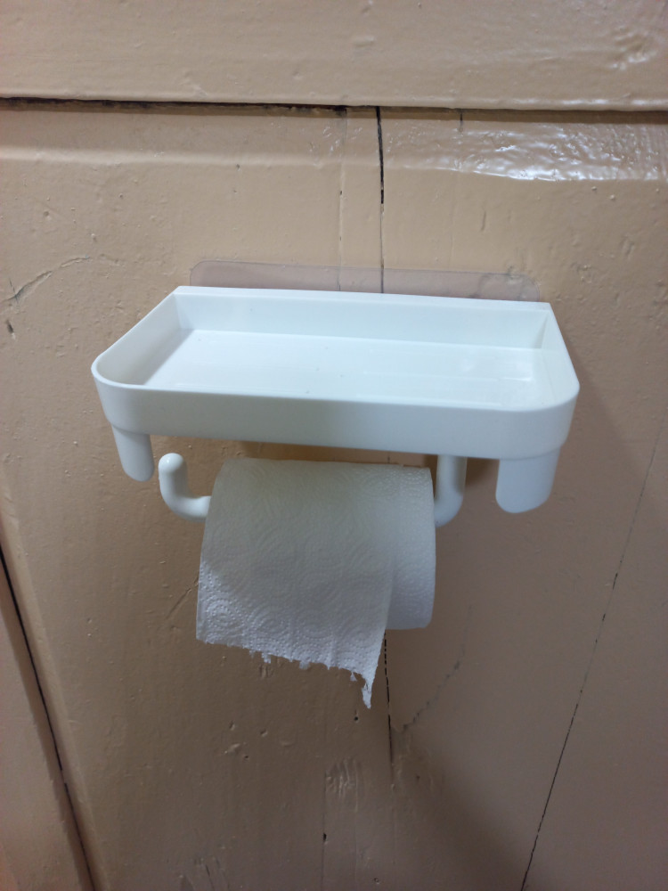Держатель для туалетной бумаги с полкой+83 держится хорошо без сверления качество хорошее