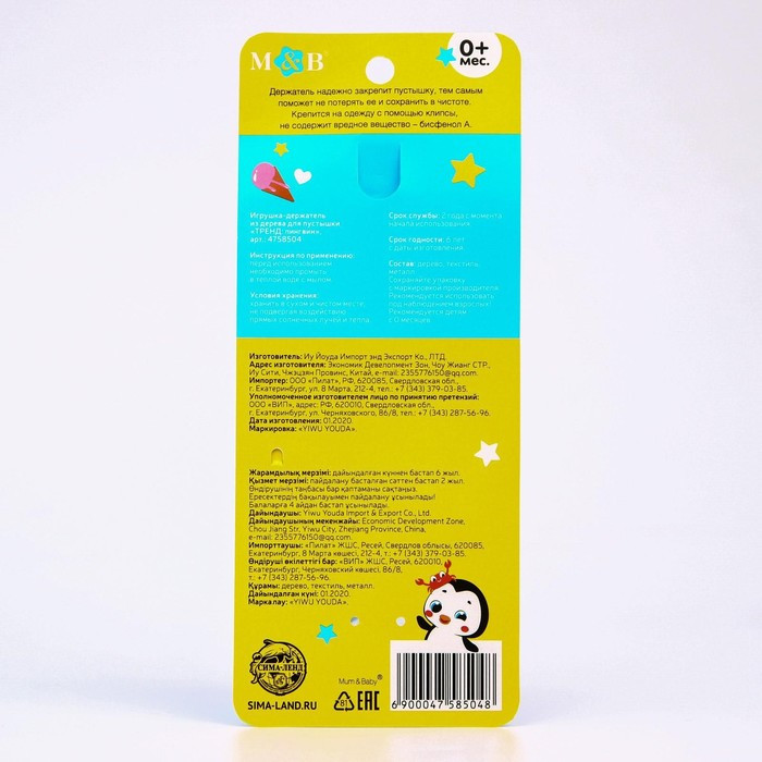 Mum&Baby Держатель-игрушка для пустышки «Пингвин»В данный момент этот товар отсутствует в продаже. Возможно, у нас найдется аналогичный или похожий товар здесь. Серия: Тренд «Пингвин» Прищепка для пустышки предотвратит потерю маленького предмета. Используйте специальный держатель, и соска всегда будет под рукой! Изделие фиксируется на одежде ребёнка. На конце цепочки есть карабин, который зацепляется за кольцо пустышки. Надёжное крепление убережёт вещь от падения на пол, если малютка случайно выронит её изо рта. С держателем можно играть, притягательный дизайн точно понравится малышу. Товар изготовлен из качественного нетоксичного материала. Подходит для деток с рождения. |