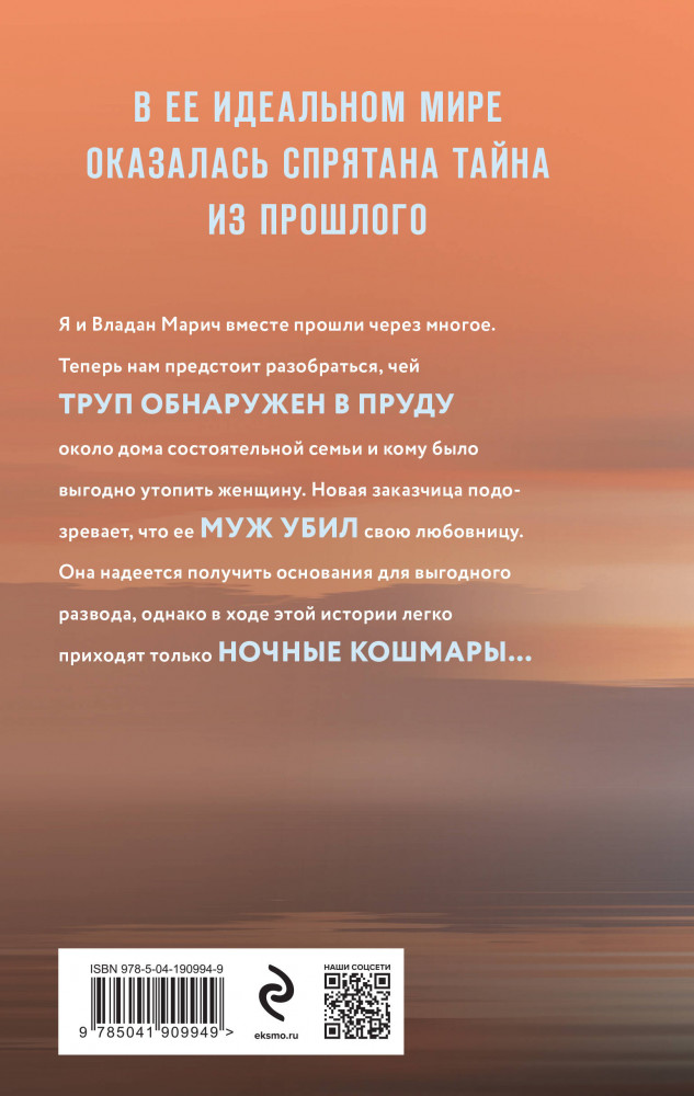 💳 Оплатить за товар можно при получении 🇰🇿 Есть бесплатная доставка по Казахстану от 1 дня 🎁 Копите бонусы с каждой покупки Серия: Детективы с авантюрой Татьяны и Анны Поляковых Я и Владан Марич вместе прошли через многое. Теперь нам предстоит разобраться, чей труп обнаружен в пруду около дома состоятельной семьи и кому было выгодно утопить женщину. Новая заказчица подозревает, что ее муж убил свою любовницу. Она надеется получить основания для выгодного развода, однако в ходе этой истории легко приобрести только ночные кошмары... |