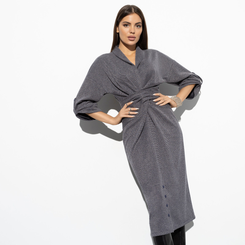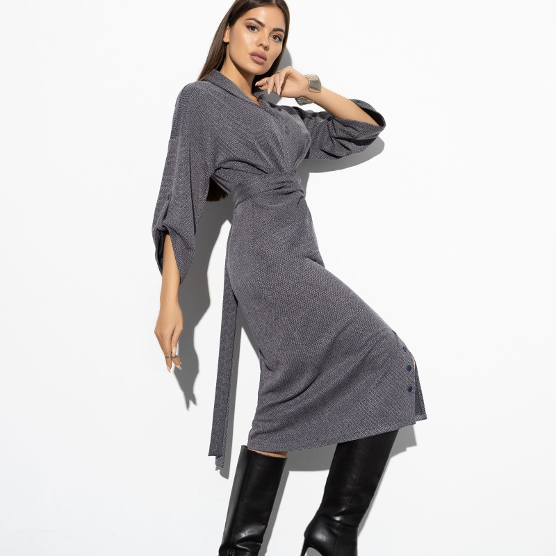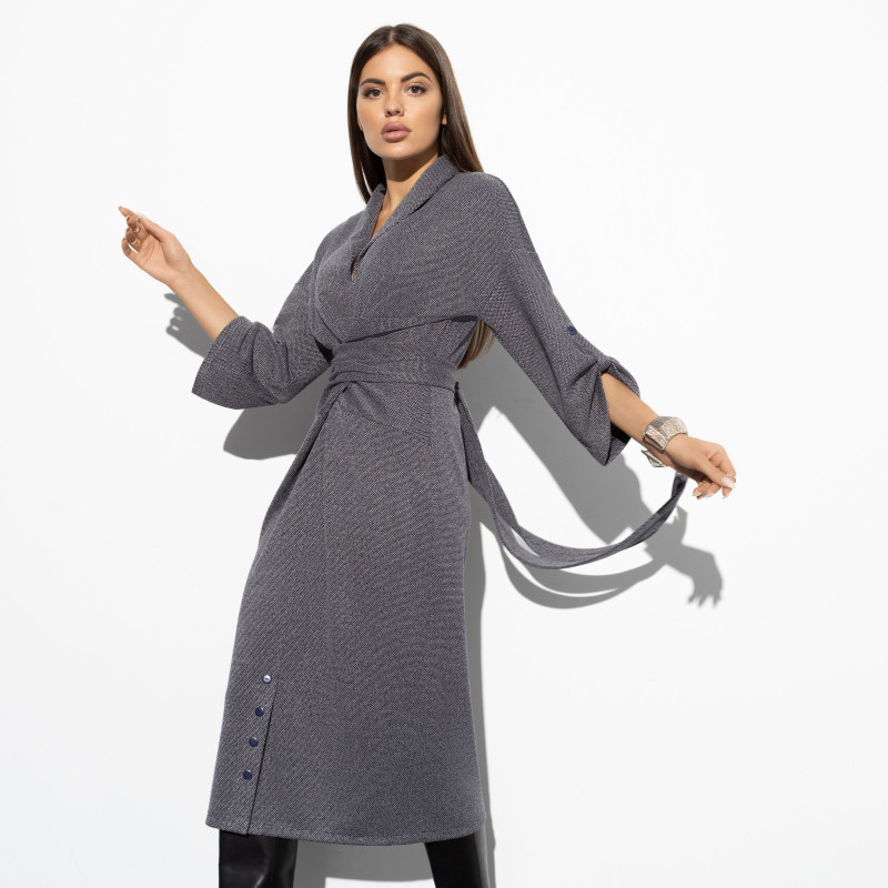 заказала 50 размер, сел не очень красиво. ткань в мелкий рубчик. очень длинный пояс.
