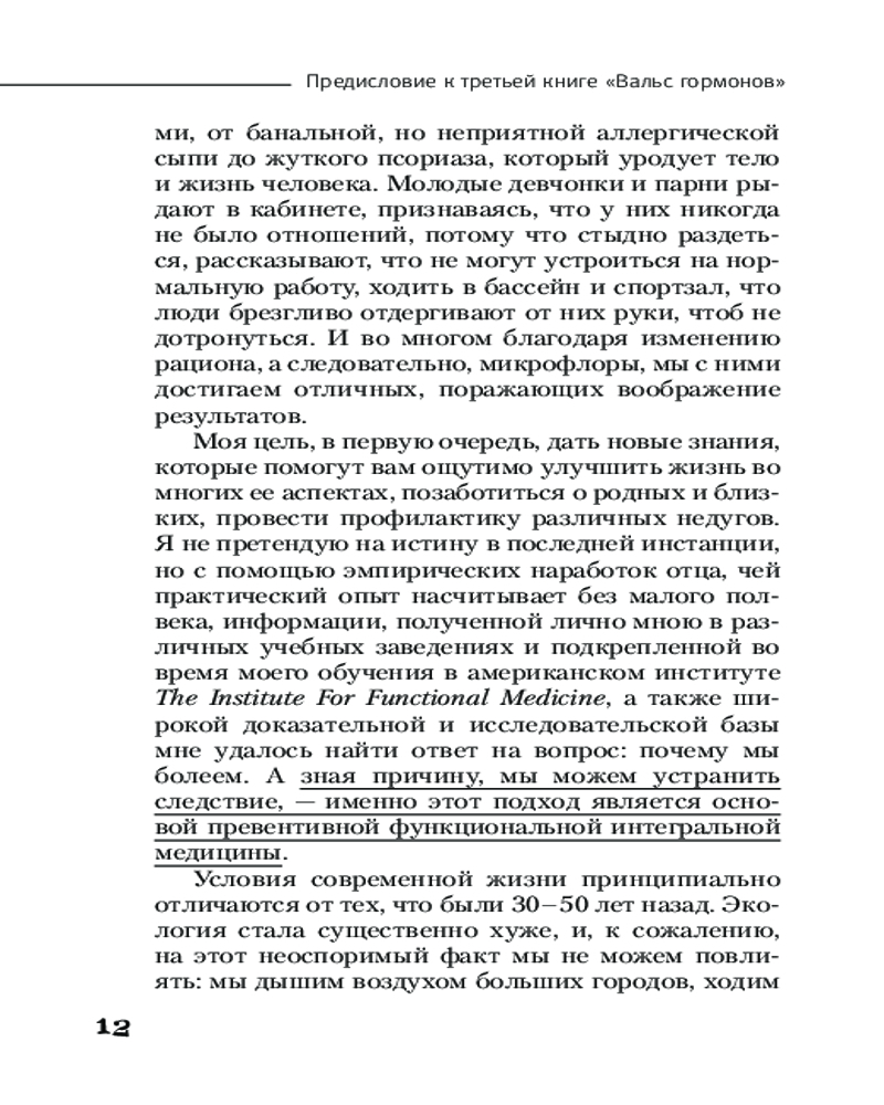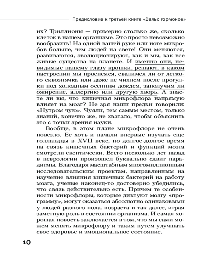В книге рассказывается о кишечнике — «втором мозге» человека, который влияет на наше здоровье: кожу, иммунитет, вес, эмоциональное состояние, работу центральной нервной системы и даже гормональный фон. В книге представлены выводы, основанные на данных фундаментальной медицины, подкрепленных новейшими исследованиями ученых: что связывает кишечник и мозг, как бактерии управляют нашим самочувствием, аутоиммунные заболевания не такие уж «неизлечимые». Самое важное от антибиотиков и аллергии до секретов красивой и здоровой кожи!