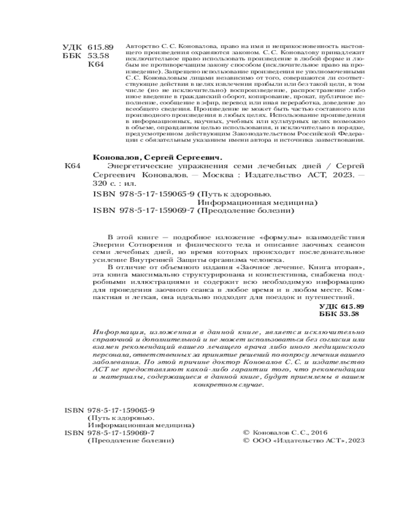 💳 Оплатить за товар можно при получении 🇰🇿 Есть бесплатная доставка по Казахстану от 1 дня 🎁 Копите бонусы с каждой покупки Серия: Преодоление болезни В книге профессора, Доктора Сергея Сергеевича Коновалова подробно описаны семь заочных сеансов, в основе которых лежит формула взаимодействия Информационных Полей Энергии Сотворения и Физического Мира. Книга содержит основы Информационно-энергетического Учения, изложенные в конспективной форме, и всю информацию, необходимую для проведения заочного лечения. |