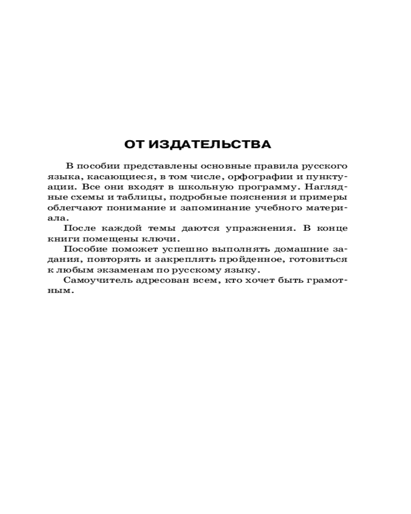 Все правила русского языка в схемах и таблицахВ данный момент этот товар отсутствует в продаже. Возможно, у нас найдется аналогичный или похожий товар здесь. Серия: Прочитать, понять, запомнить В данном пособии исчерпывающе изложены основные правила русской орфографии и пунктуации. |