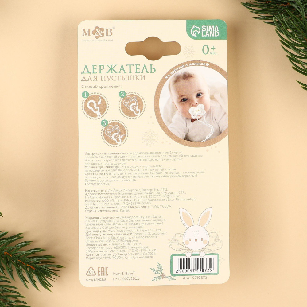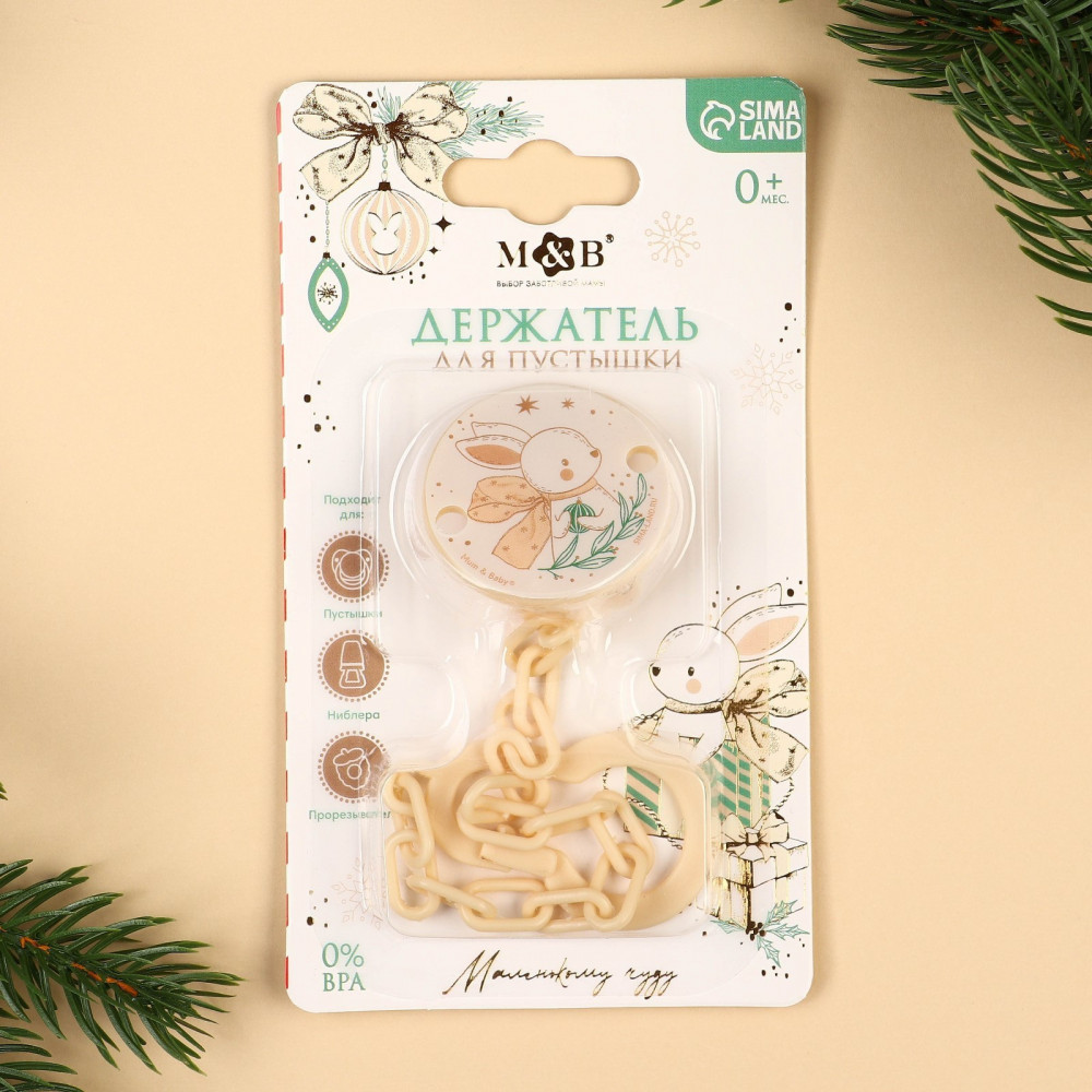 Mum&Baby Держатель для пустышки на цепочке «Новогодний зайчонок»-40% +31