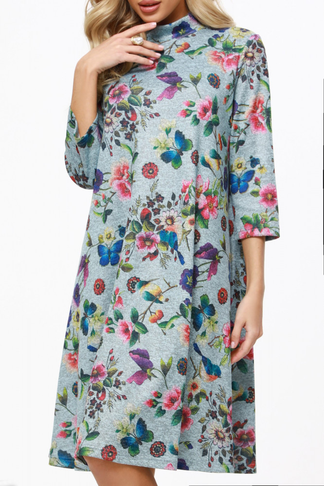 Красивый цвет есть все что угодно- цветы, бабочки. Отличный фасон и скрывает полноту