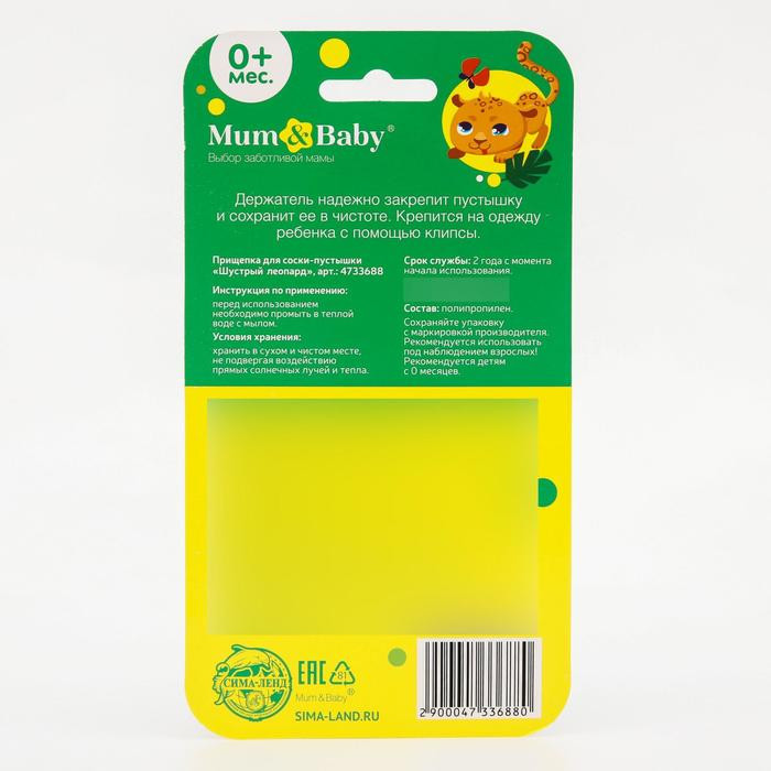 Mum&Baby Держатель для пустышки на цепочке «Леопард»В данный момент этот товар отсутствует в продаже. Возможно, у нас найдется аналогичный или похожий товар здесь. Серия: Тренд «Леопард» Прищепка для пустышки предотвратит потерю маленького предмета. Используйте специальный держатель, и соска всегда будет под рукой! С держателем можно играть, притягательный дизайн точно понравится малышу. Товар изготовлен из качественного нетоксичного материала. Подходит для деток с рождения. |