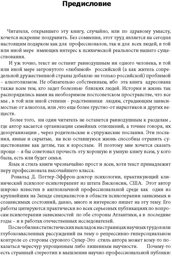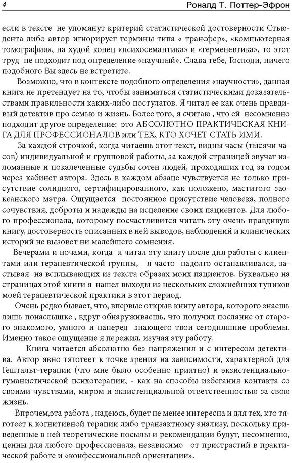 Роналд Т. Поттер-Эфрон, мастер социальной работы, доктор философии, клинический психотерапевт из О’Клэр, Висконсин. Проводит профессиональные мастерские по темам стыда и вины, управлению гневом и использованию гештальт-терапии в лечении химической зависимости и созависимости. Соредактор «Терапии стыда и вины в консультировании алкоголиков» и издания, посвященного связи между химической зависимостью и семейным насилием. |
