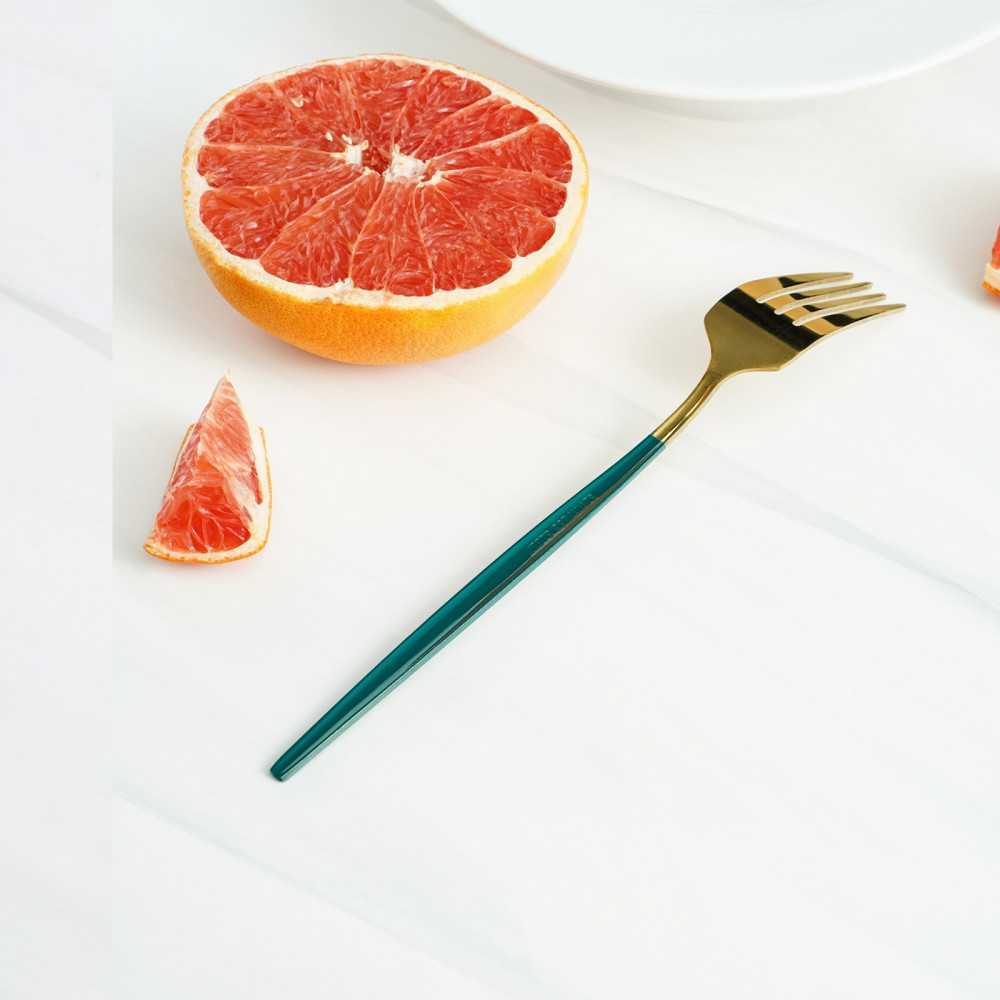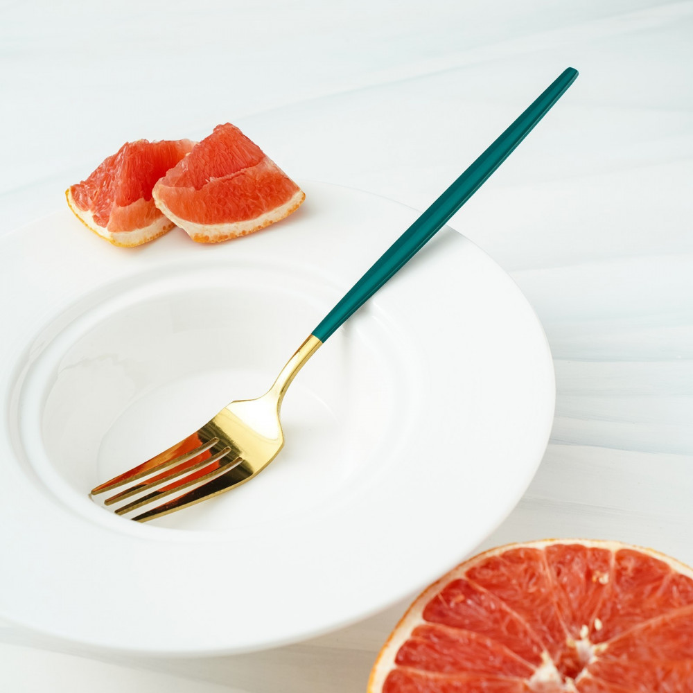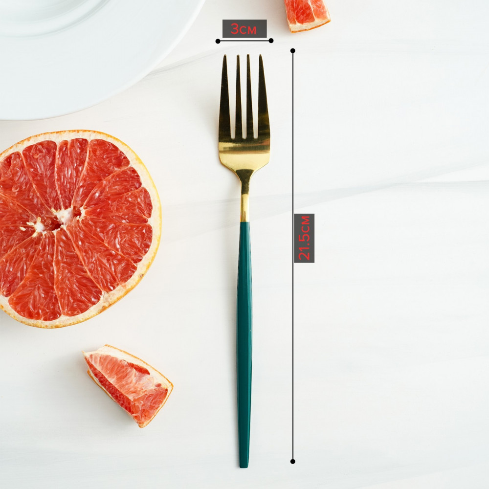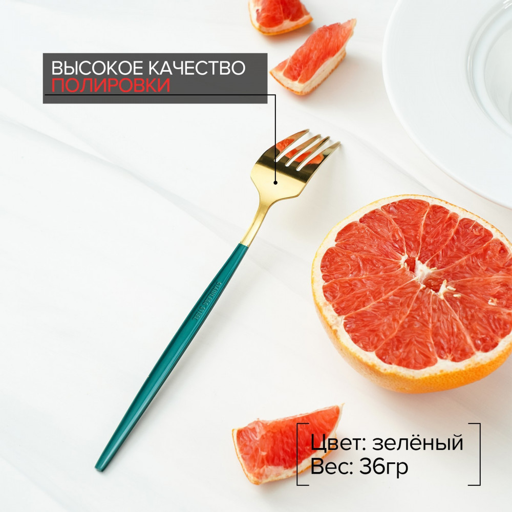 Серия: Блинк Вилка столовая «Блинк» выполнена в золотистом цвете из нержавеющей стали с зелёной ручкой. Она стильно смотрится в сервировке, отлично подойдёт для фотокомпозиций и красивой подачи горячих блюд. Вилка прекрасно подходит для сервировки стола, как в домашнем быту, так и в профессиональных заведениях, также подходит как для ежедневного приема пищи, так и для праздничного, торжественного застолья. |