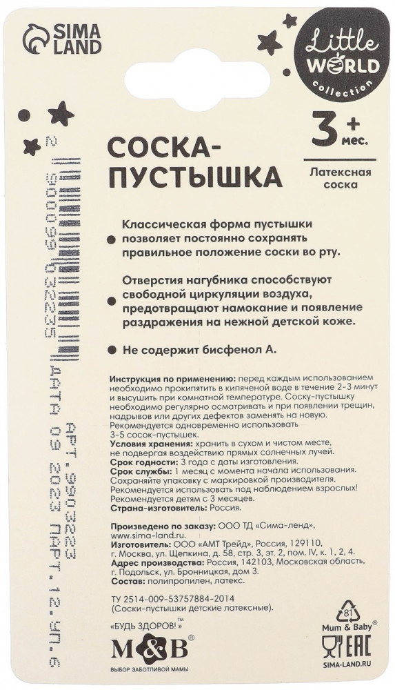 💳 Оплатить за товар можно при получении 🇰🇿 Есть бесплатная доставка по Казахстану от 1 дня 🎁 Копите бонусы с каждой покупки Соска-пустышка со латексным соском предназначена для малышей разных возрастов (см. в наименовании). Форма нагубника с симметрично расположенными отверстиями обеспечивает свободную циркуляцию воздуха для предотвращения появления опрелостей. |