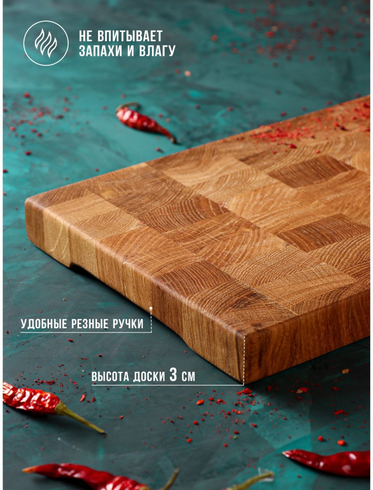 Внимание! Разделочная доска изготовлена из натуральных материалов. Поверхность может иметь шероховатость, которая никак не сказывается на функциональном состоянии.