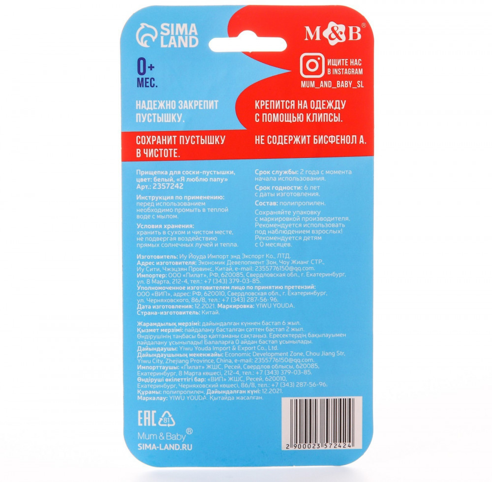 💳 Оплатить за товар можно при получении 🇰🇿 Есть бесплатная доставка по Казахстану от 1 дня 🎁 Копите бонусы с каждой покупки Серия: Люблю маму и папу Прищепка — это стильный аксессуар, который предотвратит потерю маленького предмета. Используйте специальный держатель на цепочке, и соска всегда будет под рукой! Дизайн прищепки разработан специально для маленьких модников и модниц. Яркие цвета прекрасно подойдут к гардеробу малыша. Забавная надпись вызовет умиление у взрослых, а рисунок понравится карапузу. Товар изготовлен из качественного нетоксичного пластика. Подходит для деток с рождения. |