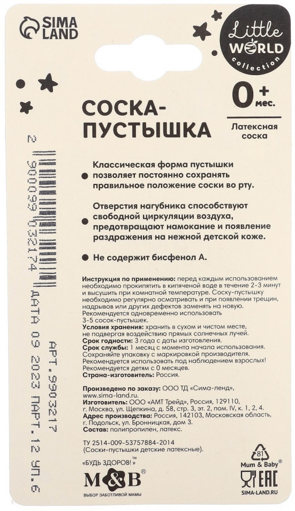 Mum&Baby Соска-пустышка для девочкиВ данный момент этот товар отсутствует в продаже. Возможно, у нас найдется аналогичный или похожий товар здесь. Соска-пустышка со латексным соском предназначена для малышей разных возрастов. Форма нагубника с симметрично расположенными отверстиями обеспечивает свободную циркуляцию воздуха для предотвращения появления опрелостей. |